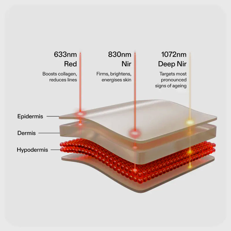 - Near-infrared (830 nm): energizes cells to improve skin firmness, elasticity, and radiance.
